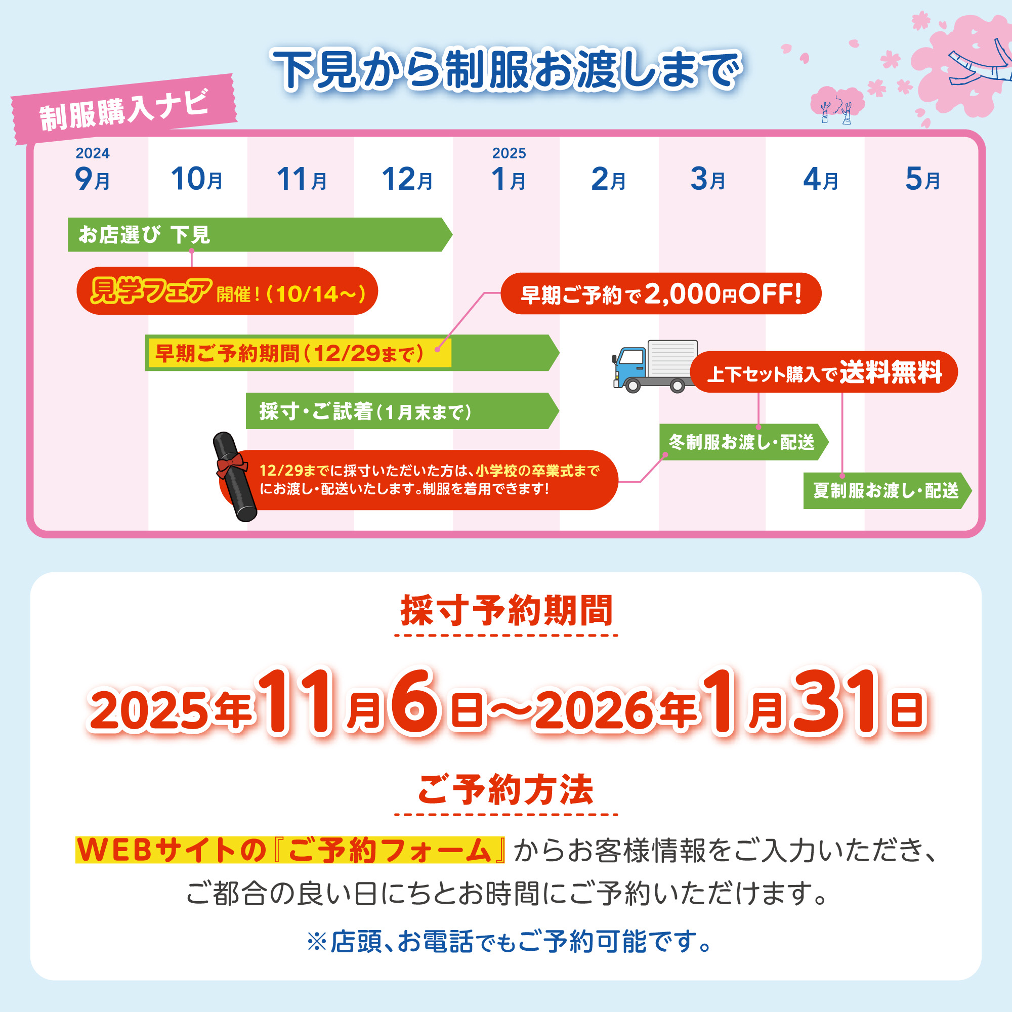 🟦制服採寸のご予約は、当店ホームページの予約フォームより随時承っております。