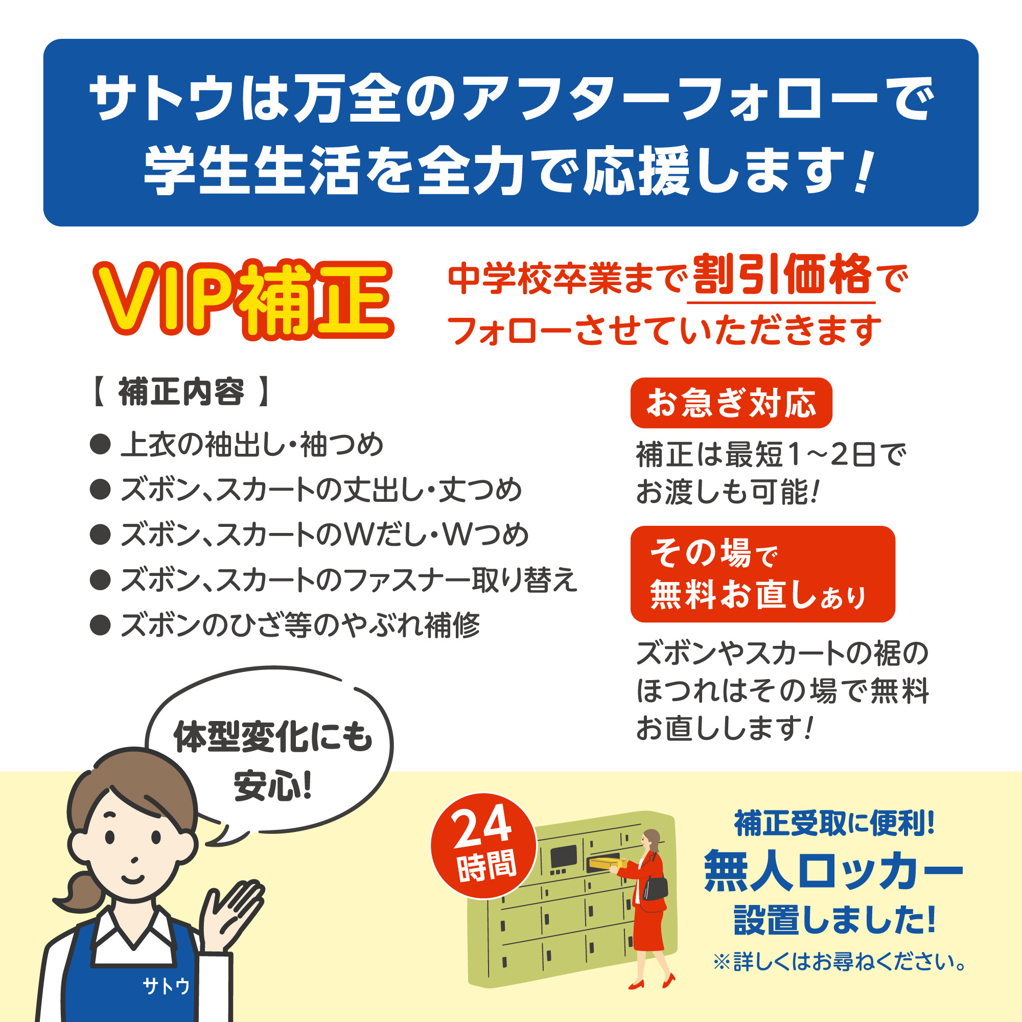 中学校卒業までのサイズ補正を割引価格でサポート!